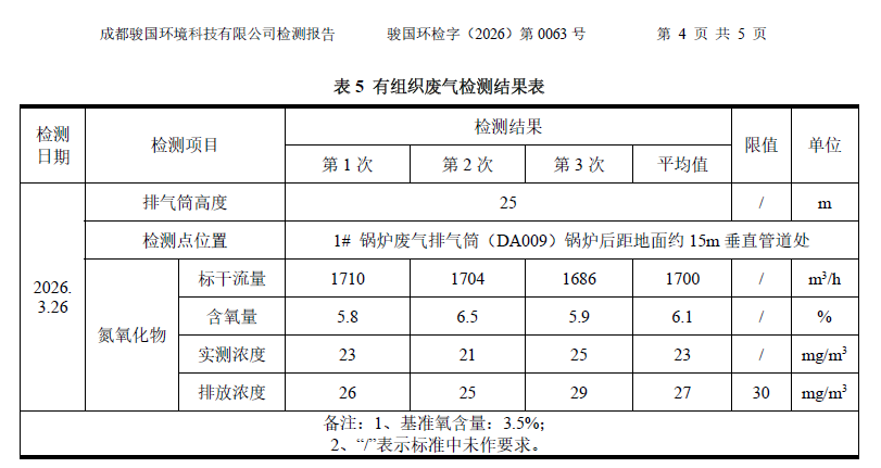 四川宏亿复合材料工程技术有限公司2026年3月份环境监测公示