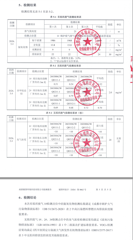 四川宏亿复合材料工程技术有限公司2026年4月份环境监测公示