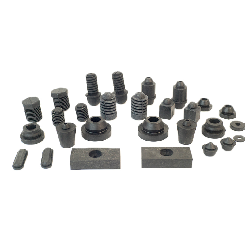 汽车用各规格形式的橡胶减振块,减振垫、减振支座。使用耐老化,性能优异的三元乙丙橡胶,相比传统的天然橡胶,其耐热氧老化、耐气候性和耐水性更好,在汽车外部和车门处的使用寿命更长,性能更优异。公司设计有多种规格的橡胶堵盖,满足不同的需求。