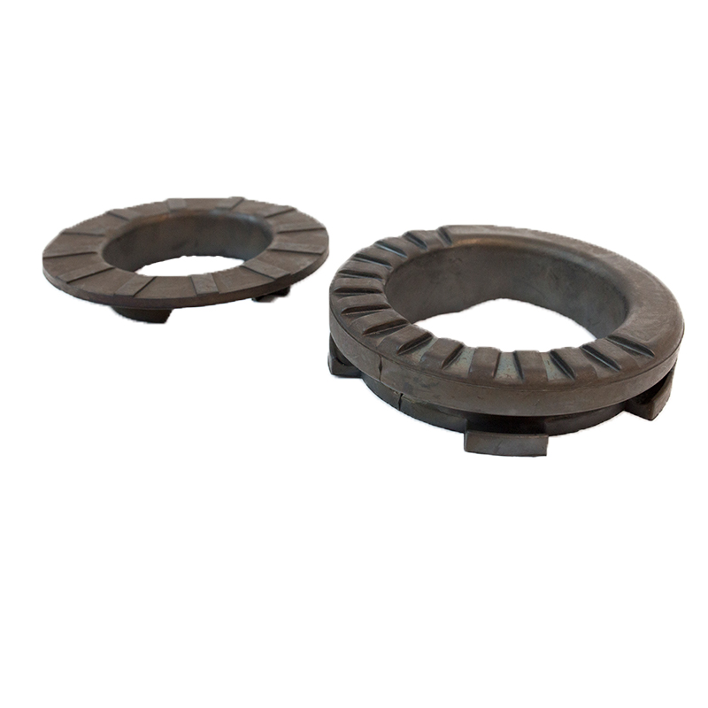轿车用减震橡胶垫,该产品用于汽车轮胎上方的减震系统中,通过橡胶垫优异的弹性变形和减振降噪性能提高车辆整体的减振性能和乘坐舒适性。产品采用高品质天然橡胶和顺丁橡胶并用,添加抗热老化和耐臭氧的助剂保证产品的使用效果和长效寿命。